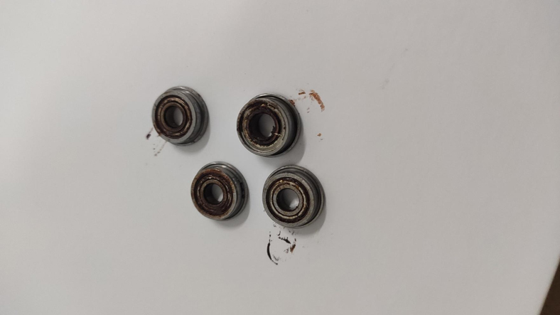 长期的使用会使得机器内部的各种部件会不可避免的出现磨损的情况,尤其是带动机器运行的零部件。例如: 蠕动机构中用于支承传动轴和电机轴转动的上下四个轴承(以该结构为例,各品牌因结构不同,可能数量及外型存在差异),在使用频率较高,使用年限较长的情况下,将会有可能因轴承磨损,使得配合间隙过大,产生径向跳动。导致机器运行时出现异响,流速不准等现象,甚至出现挤压时不能完全闭合输液管路造成机器不运行也会因为重力滴出液体,最终导致药液不能以设定的速度进行输送。如下图所示: